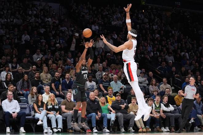 開拓者過去兩場連贏籃網(wǎng)與步行者收獲2連勝,森林狼過去兩場連贏太陽與爵士收獲2連勝,本賽季前三次交鋒森林狼均戰(zhàn)勝開拓者。本場森林狼缺少愛德華茲與里德,開拓者缺少楊瀚森、夏普與利拉德,楊瀚森本場是第36場缺席NBA比賽。首節(jié)雙方內(nèi)線接連得分,迪文琴佐連續(xù)三分命中,但開拓者內(nèi)外開花保持領先優(yōu)勢,首節(jié)比賽結束開拓者33-28領先森林狼。