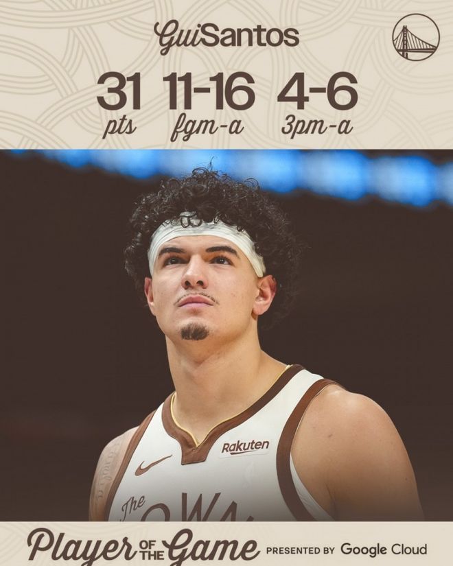 勇士:桑托斯31分3板2斷生涯新高、波杰姆斯基22分6板5助、波爾津吉斯17分5板2助、梅爾頓14分9板3助4斷、小佩頓10分7板2助。