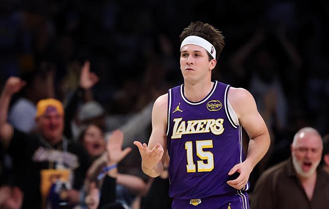 本場比賽中,湖人的先發后場球星奧斯汀-里夫斯(Austin Reaves)的表現還是相當不錯的。里夫斯全場出場40分04秒,投籃13中7,三分線外7中4,罰球11中8,拿下了26分8籃板5助攻1搶斷的數據,還有2次失誤和2次犯規,正負值更是達到了全場最高的+26。里夫斯在比賽前三節的表現一塌糊涂,僅以8中3的效率得到了11分,在上半場比賽中更是只得到了4分。沒想到到了比賽最后一節,里夫斯以5中4的效率豪取15分,其中在三分線外更是4中4。里夫斯在最后一節大殺四方,展現出了自己超強的得分能力和投射能力,這也是球隊能夠在比賽最后一節建立起比賽優勢并且比較順利地拿下勝利的關鍵因素。當然了,里夫斯如果能夠早一點完成爆發,打出第四節這樣的表現,那么湖人可能也會贏得更加輕松,可能也會更早地建立起比賽優勢。