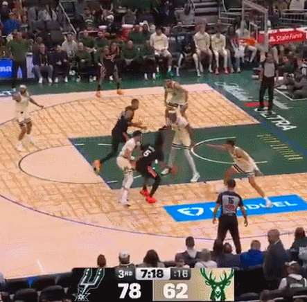 在當地時間周六馬刺對陣密爾沃基雄鹿的比賽中,圣安東尼奧人以127比95的大比分瘋狂碾壓對手,輕松將球隊的八連勝收入囊中。但整場比賽最讓人血脈噴張的畫面,出現在第三節中段。當時,斯特凡·卡斯爾帶球殺入內線,在罰球線附近成功吸引了對手的雙人包夾。隨后,他將球高高拋向了自己身高7尺4寸的內線搭檔。