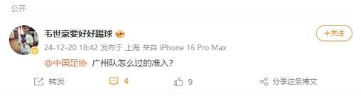 有內(nèi)情?韋世豪質(zhì)問中國足協(xié):廣州隊(duì)怎么過的準(zhǔn)入? ???